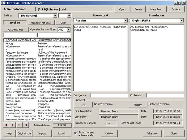 In MetaTexis, all translation memories can be displayed and edited. You have access to many kinds of information and can filter the TM. And, you can navigate through the whole database.